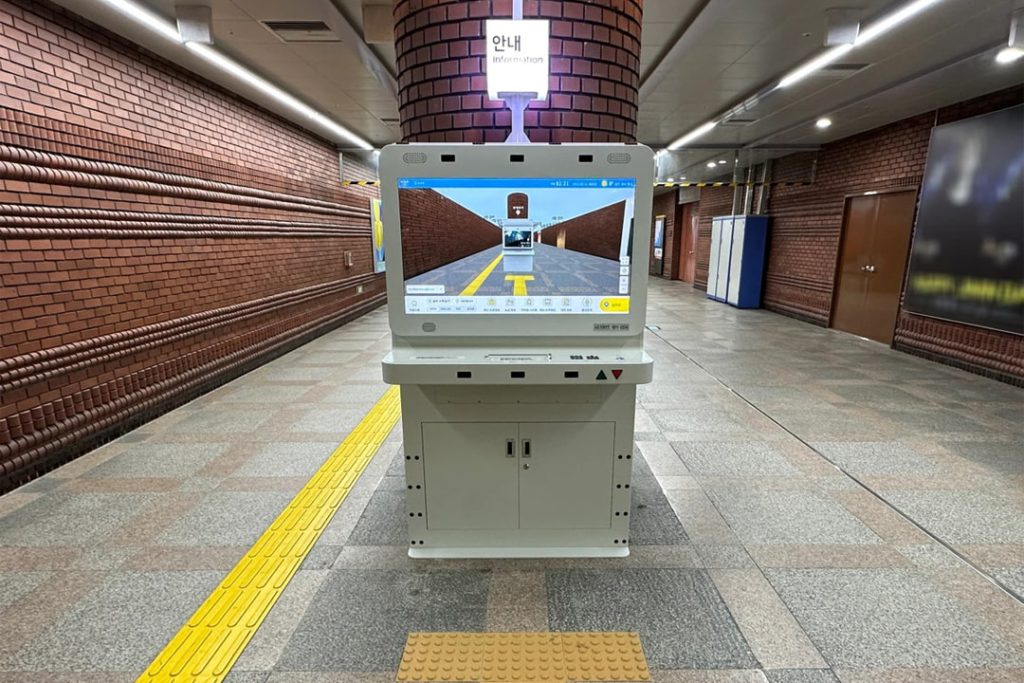 Wheelchair Users & Children: The kiosk features a motorized height-adjustment sensor. It detects the user’s eye level and automatically lowers the interface so the screen and tactile pad are within reach.